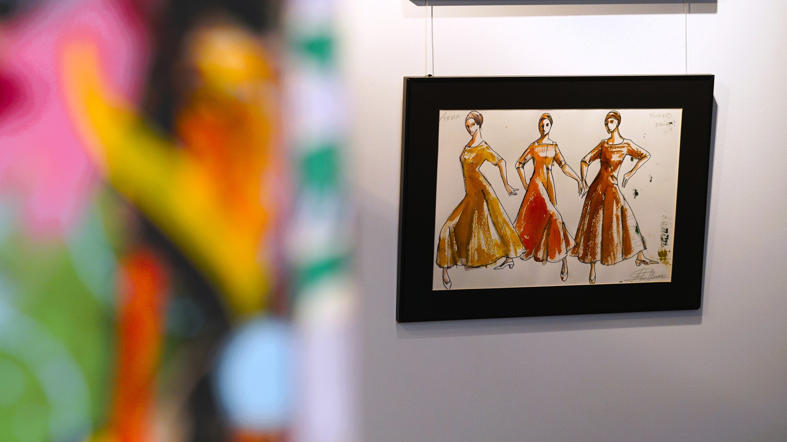 Una de las secciones más destacadas de la muestra es la pared que alberga los bocetos de Pedro Moreno y Christian Lacroix. Ambos diseñadores, figuras internacionales de la moda, han estado presentes en la trayectoria de Cristina Hoyos, y sus diseños de vestuario, plasmados en ligeros trazos, reflejan el proceso creativo que da vida a la esencia del espectáculo.