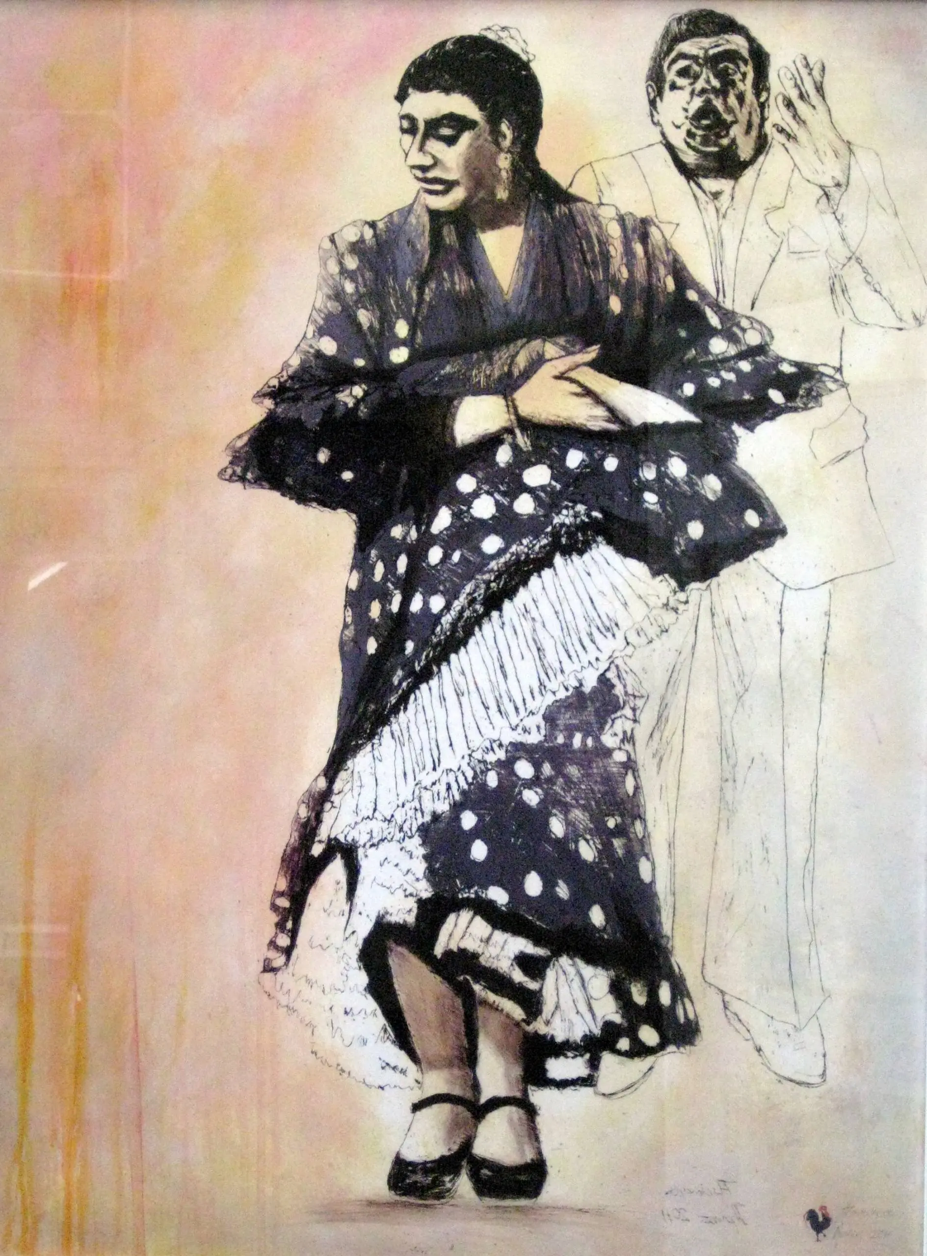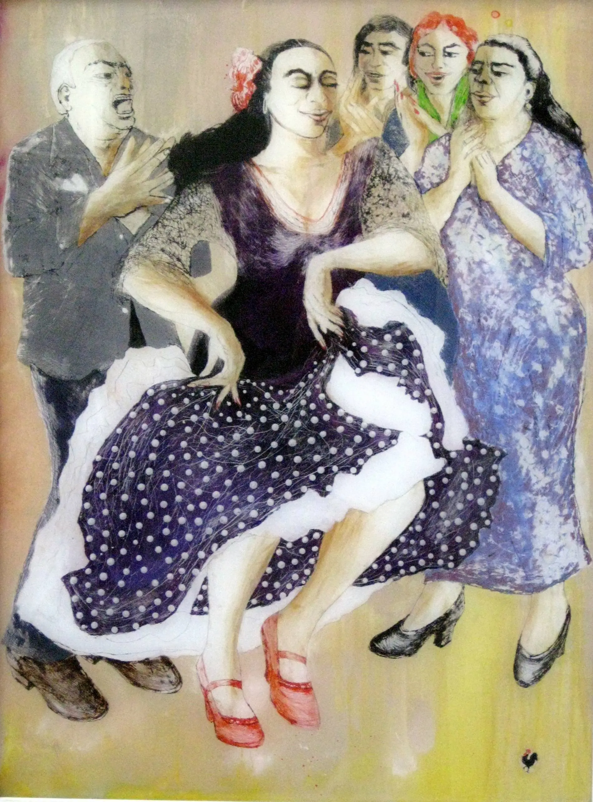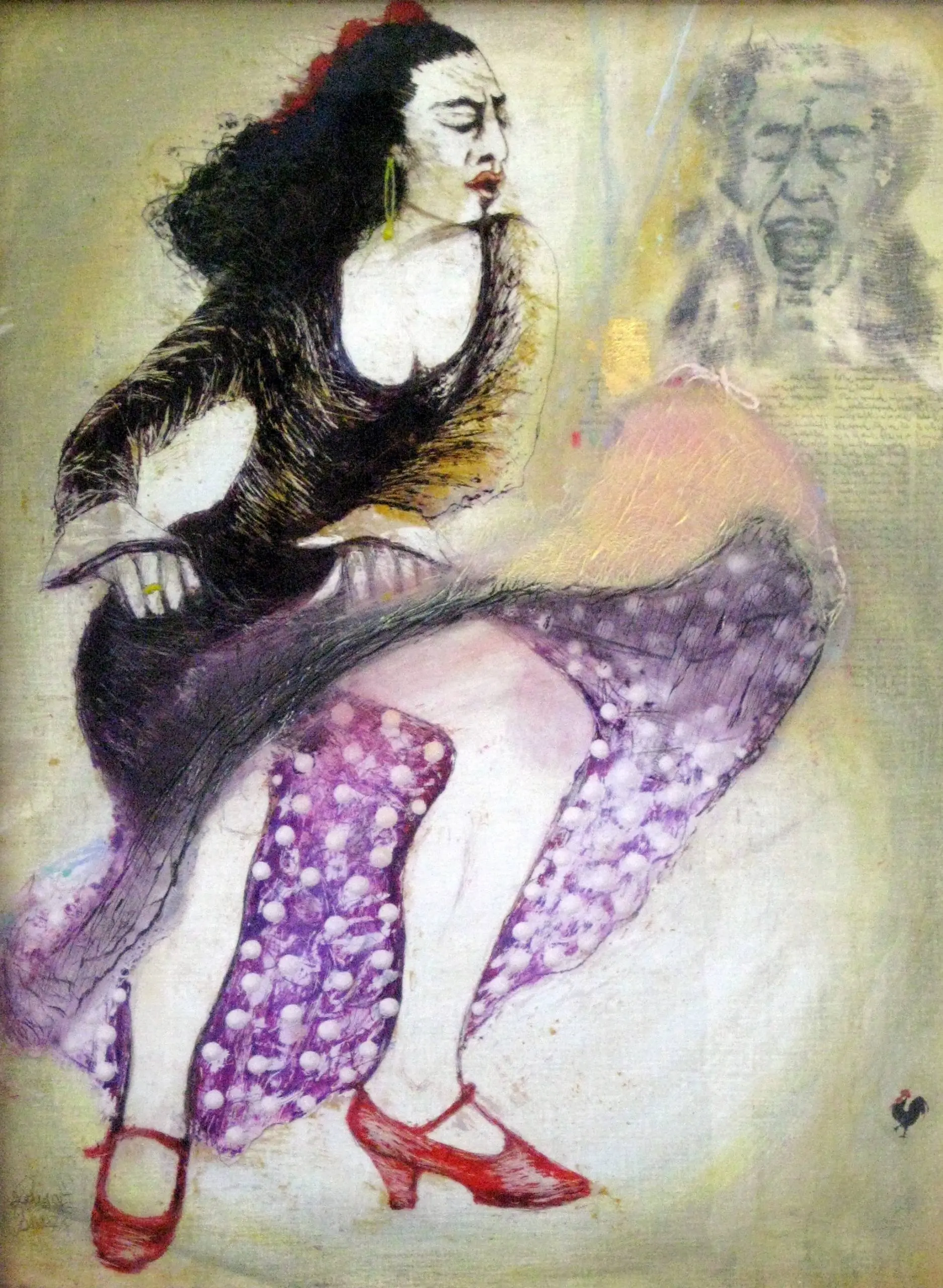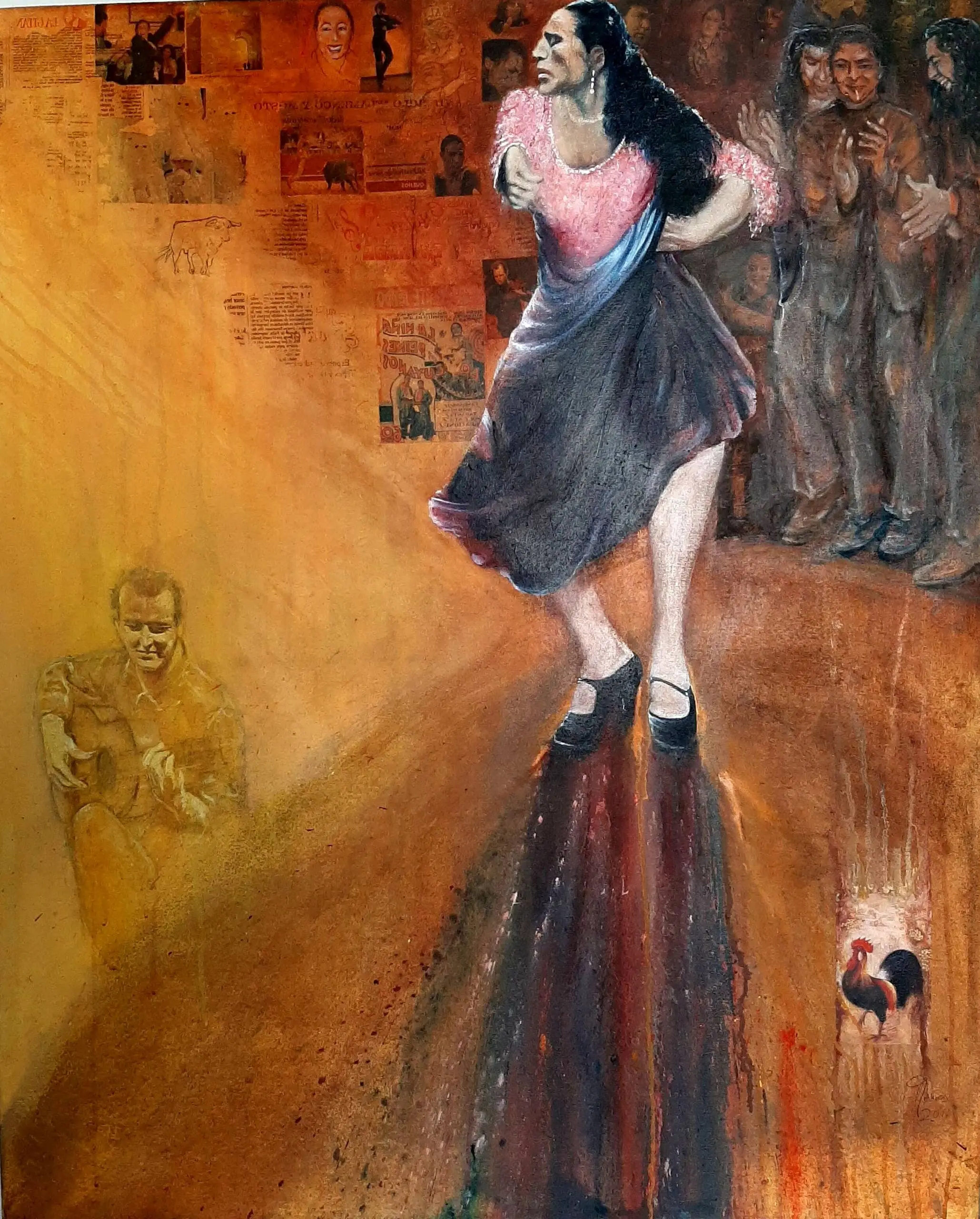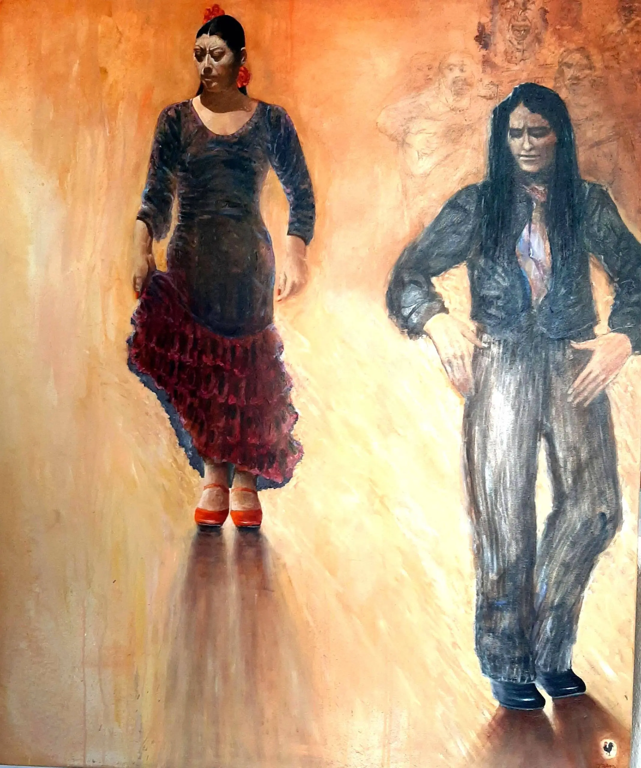 Las obras reflejan una visión muy diferente del flamenco. El autor, nos trasmite el sentimiento de libertad que da el flamenco a través de líneas caricaturescas y siempre desde la búsqueda de la quinta esencia humana.