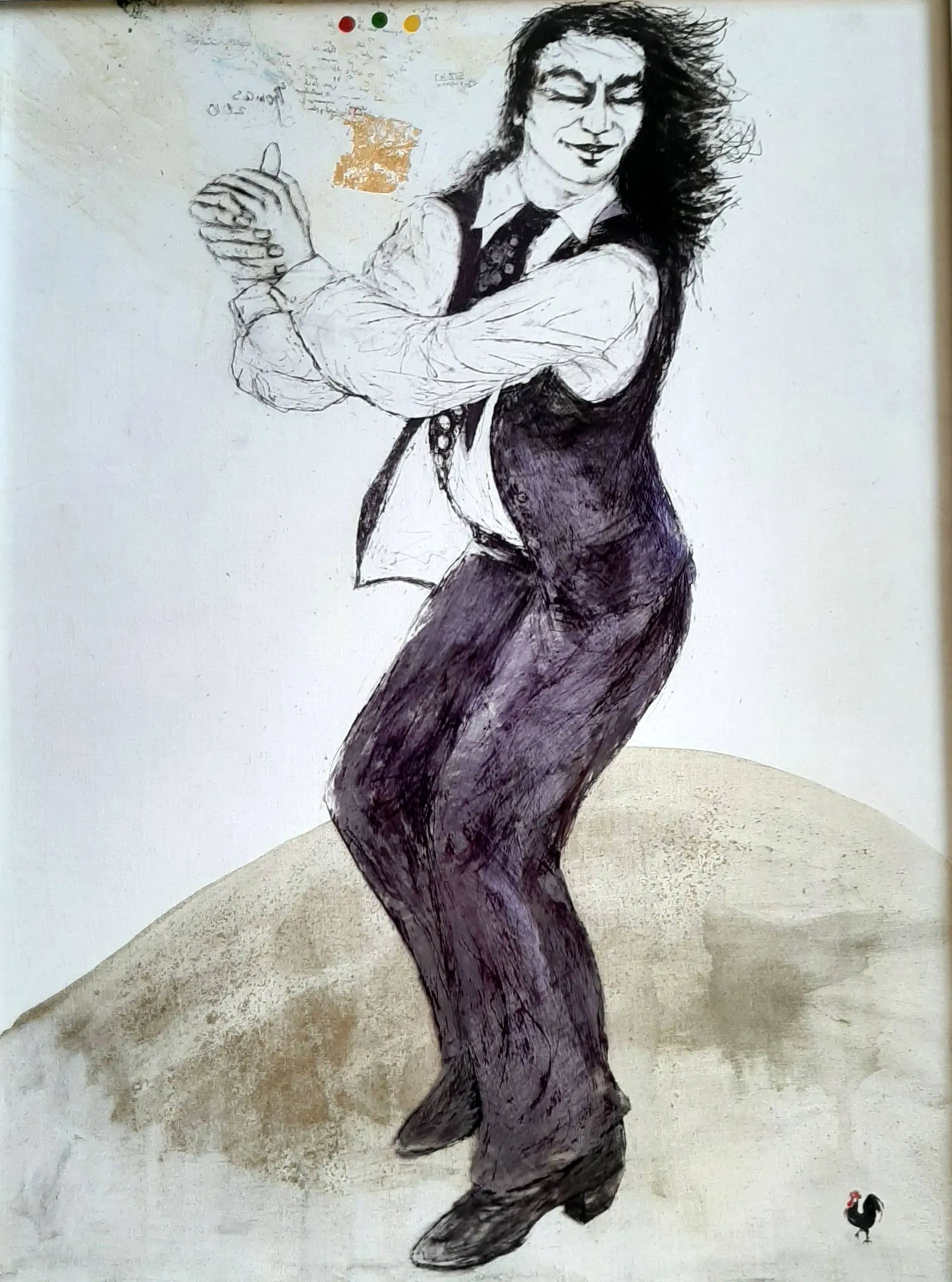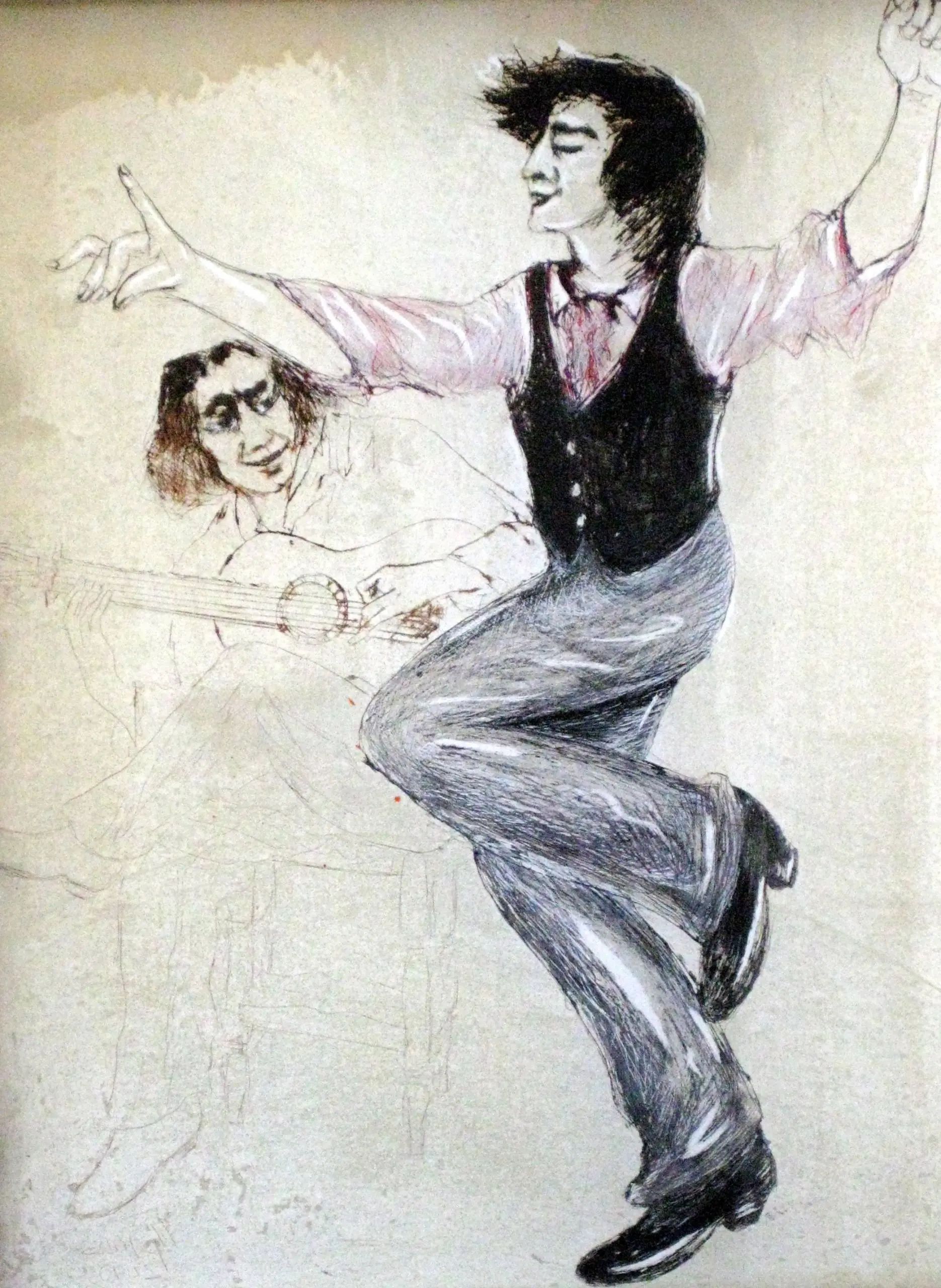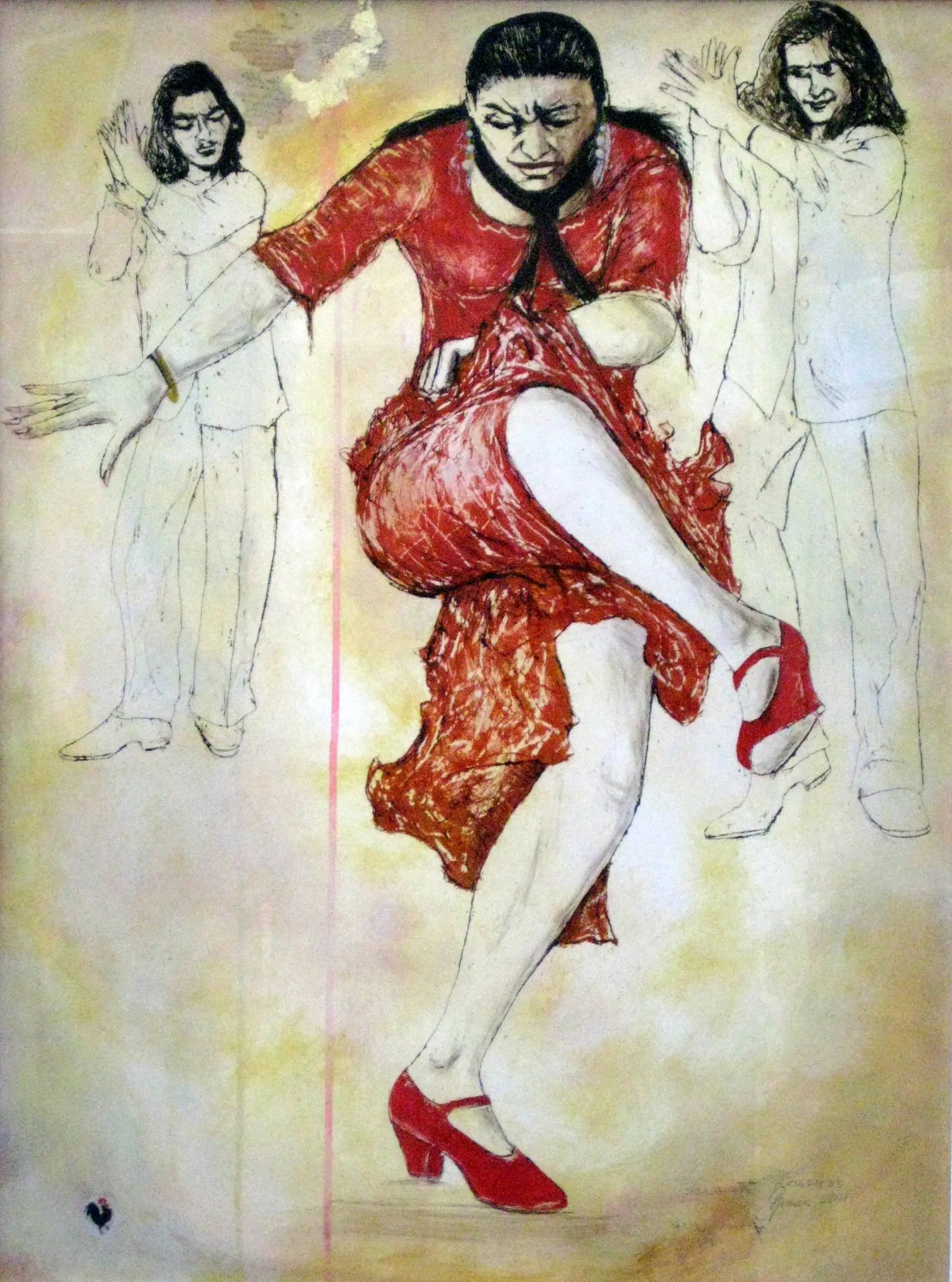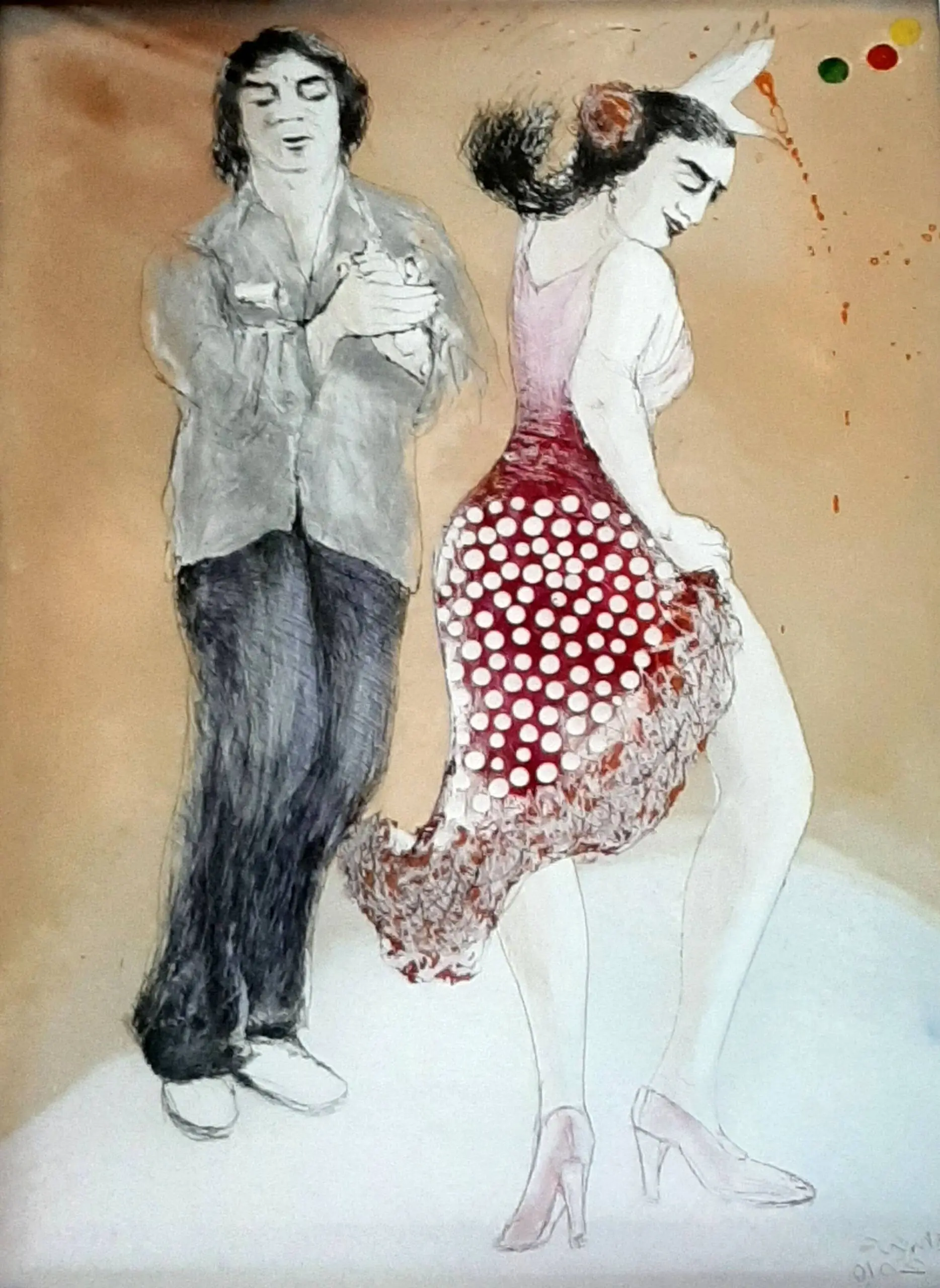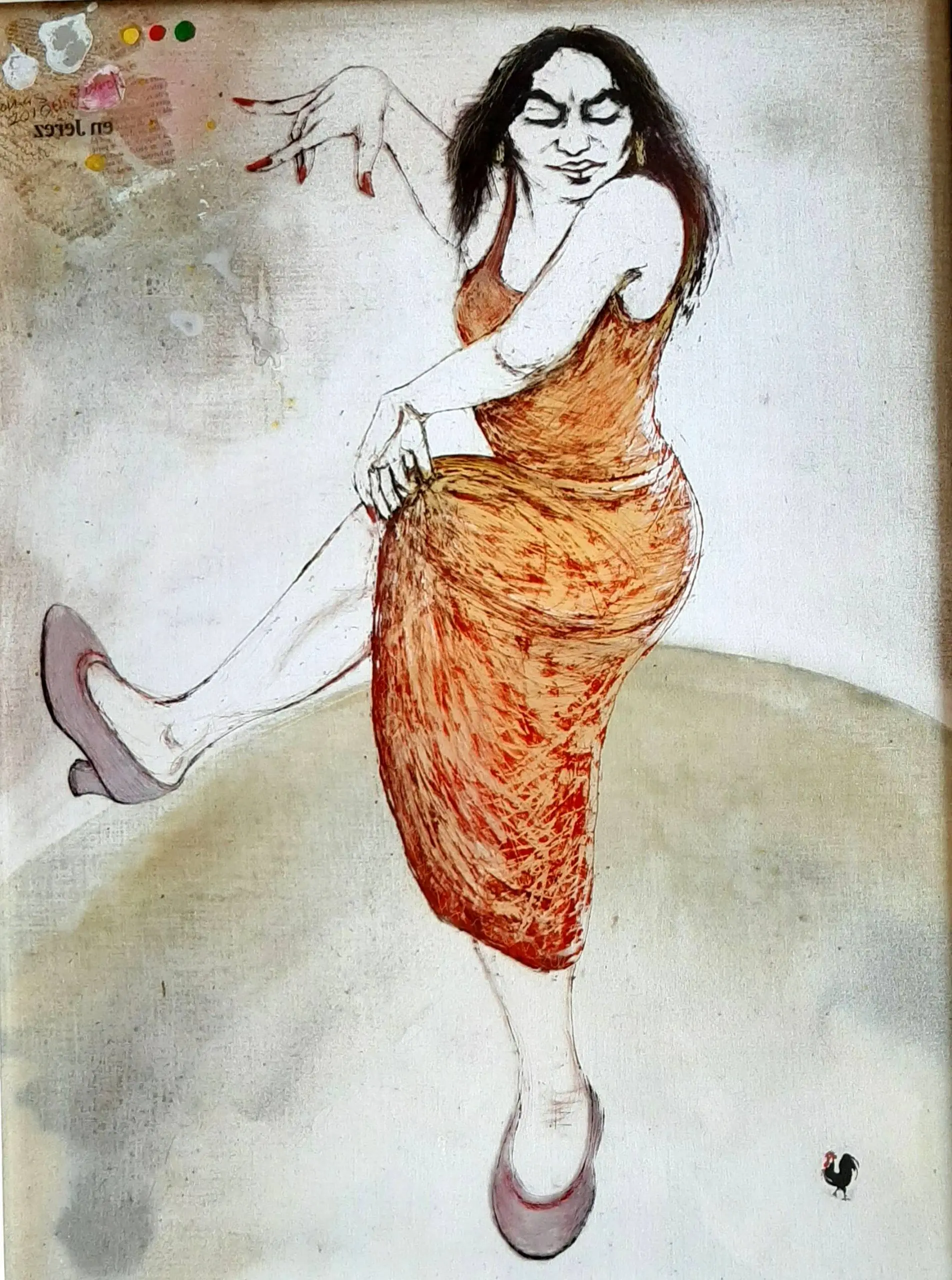 Las obras reflejan una visión muy diferente del flamenco. El autor, nos trasmite el sentimiento de libertad que da el flamenco a través de líneas caricaturescas y siempre desde la búsqueda de la quinta esencia humana.