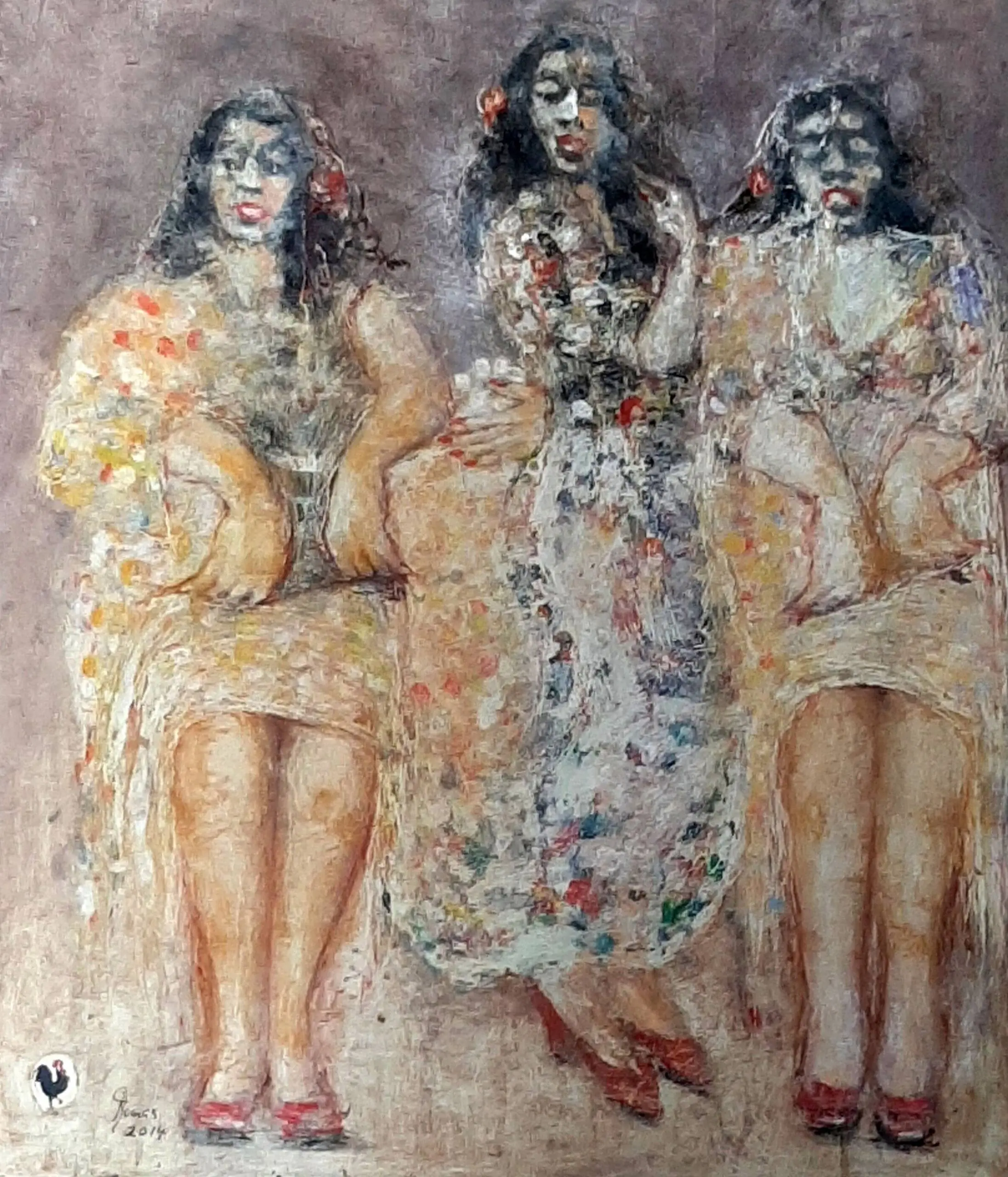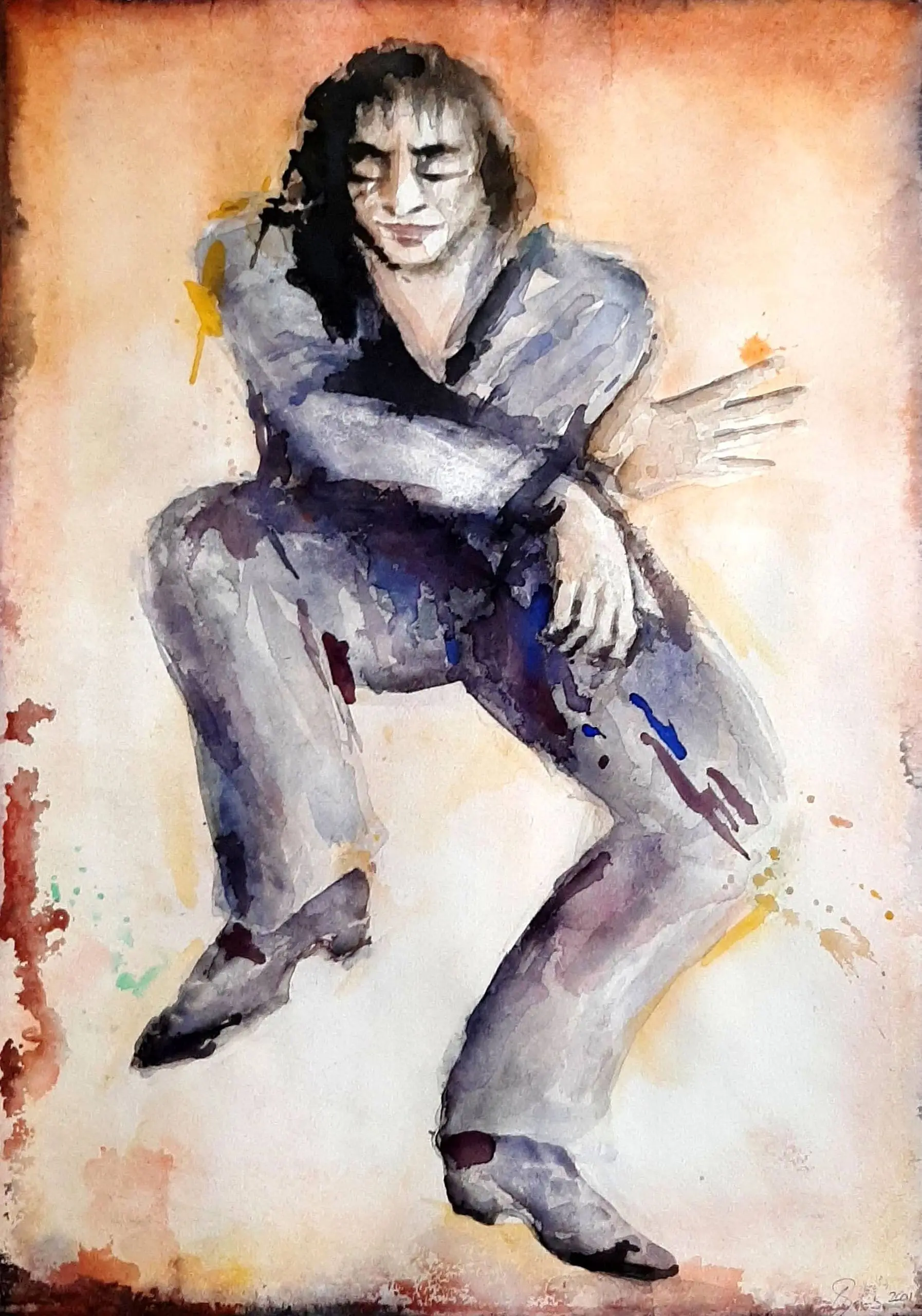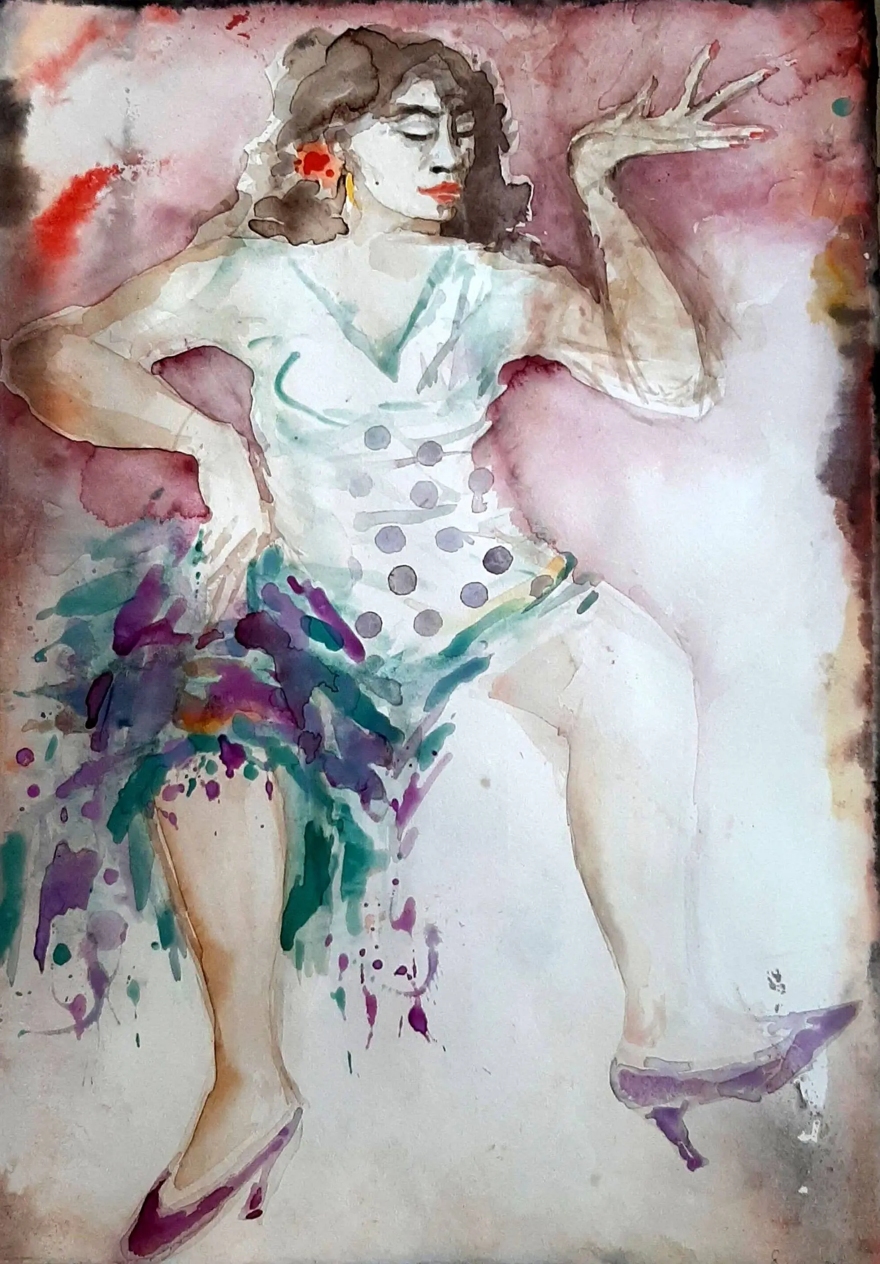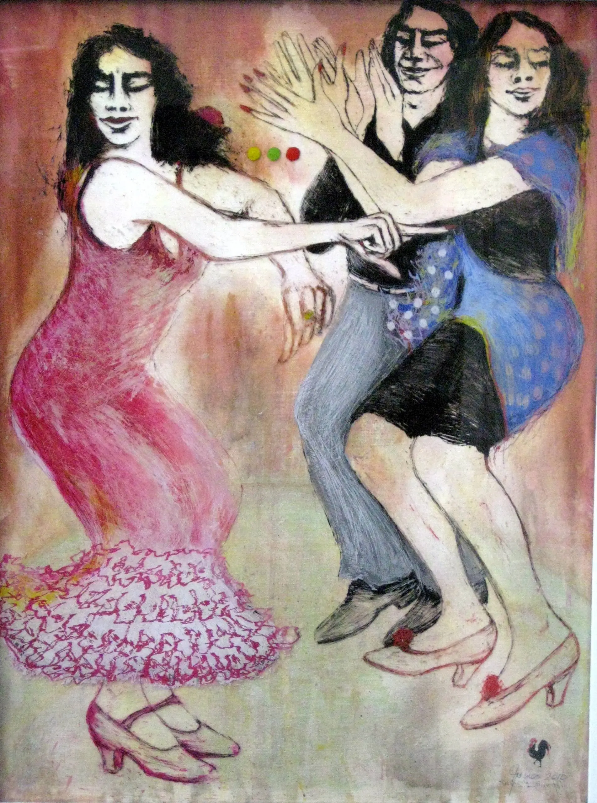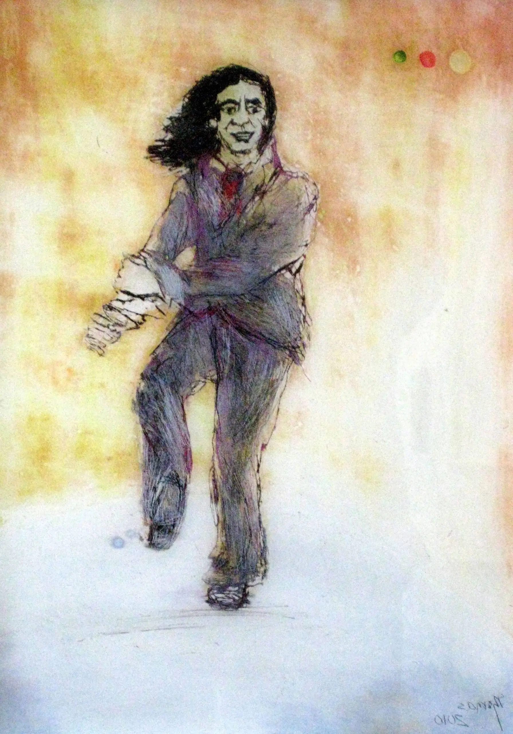 Las obras reflejan una visión muy diferente del flamenco. El autor, nos trasmite el sentimiento de libertad que da el flamenco a través de líneas caricaturescas y siempre desde la búsqueda de la quinta esencia humana.